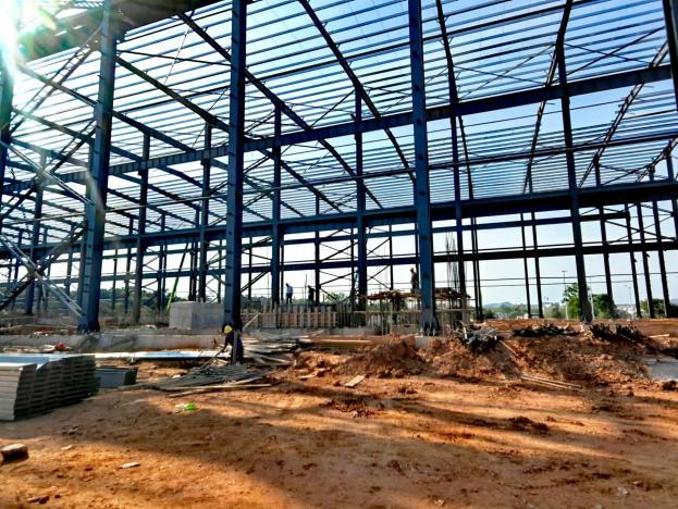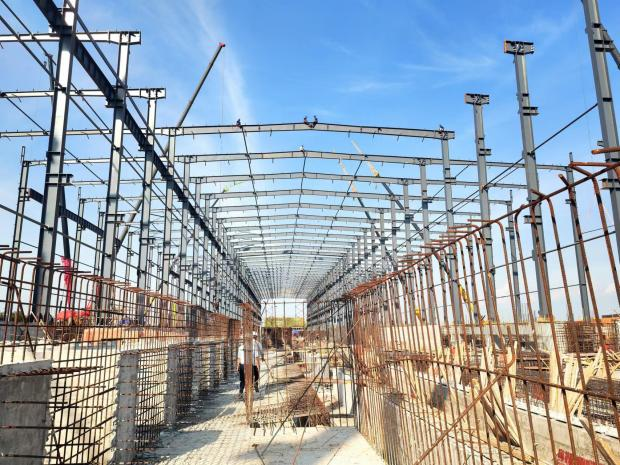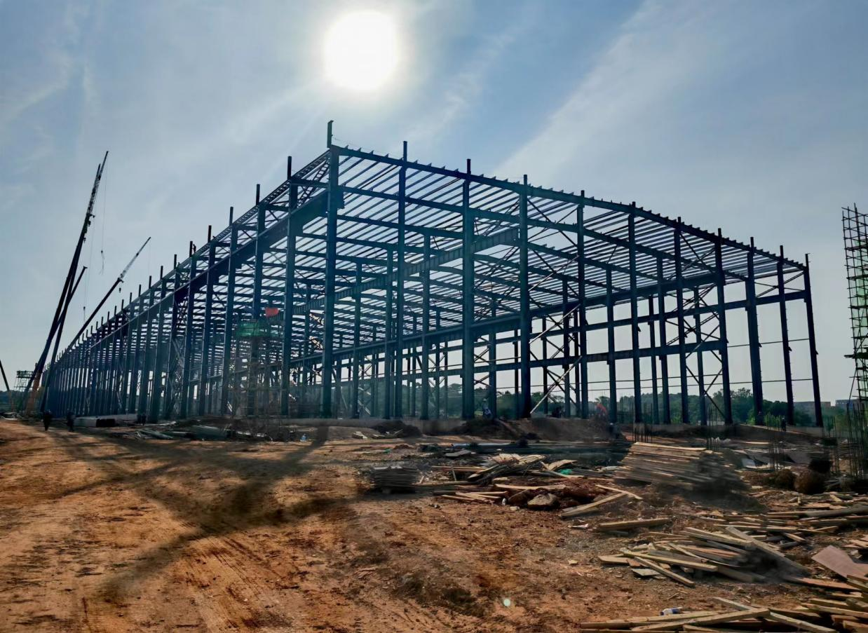 話不多說,先上圖,這是8月初的項目現場,當時還只有幾根“孤零零”的鋼結構柱子立在現場↓↓↓