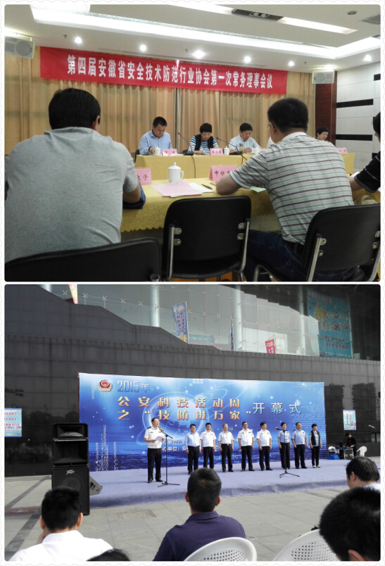 本次會議主要內容是增選安徽省安全技術防范行業協會副理事長單位;成立安徽省安全技術防范行業協會專家委員會。會上,江燕秘書長作了《安徽省安全技術防范行業協會2015年工作要點》的報告。會議期間,在淮河文化廣場會展中心南廣場舉辦了公安科技活動周之“技防進萬家”活動。
