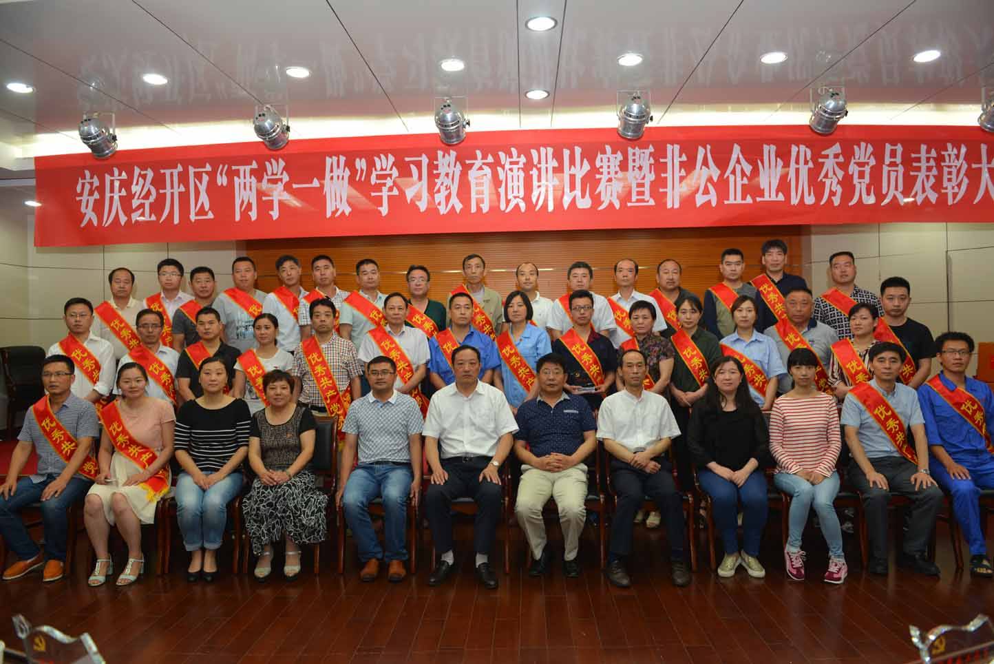 近日,為了慶祝中國(guó)共產(chǎn)黨成立95周年,扎實(shí)推進(jìn)“兩學(xué)一做”學(xué)習(xí)教育,進(jìn)一步掀起學(xué)習(xí)熱潮,激勵(lì)廣大黨員干部在我區(qū)政治經(jīng)濟(jì)建設(shè)中奮發(fā)有為、建功立業(yè),安慶經(jīng)開(kāi)區(qū)召開(kāi)了“兩學(xué)一做”學(xué)習(xí)教育演講比賽暨非公企業(yè)優(yōu)秀黨員表彰大會(huì),安慶經(jīng)開(kāi)區(qū)有關(guān)領(lǐng)導(dǎo)、區(qū)內(nèi)非公企業(yè)、社會(huì)組織黨組織負(fù)責(zé)人以及黨員代表參加大會(huì)。