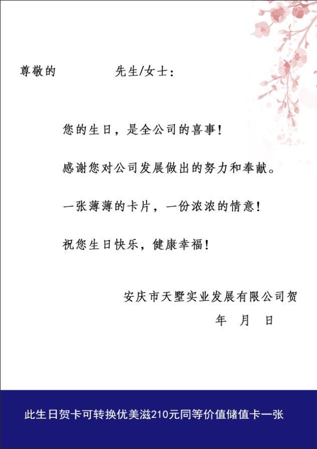 二、生日蛋糕由本地品牌,更換為全國品牌—優美滋,外形設計更加時尚、高端、上檔次;生日賀卡更加簡潔、大方、大氣;