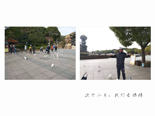于是你會輕易發現,這次小伙伴們選擇的拍照地點和內容有了明顯的變化,大多從拍人到選擇了拍景,又喜歡在大佛身前的登云階梯前留下自身的影像。或許在每個人的心里,都存在著對無上信仰的尊崇和不愿褻瀆,又都存在著對祥和美好的喜愛與向往。你看,這些靦腆的大男孩們就悄悄喂起了鴿子,而他們抬眼所及的前方,便是九龍灌浴太子金身,身后,是佛陀降魔浮雕。