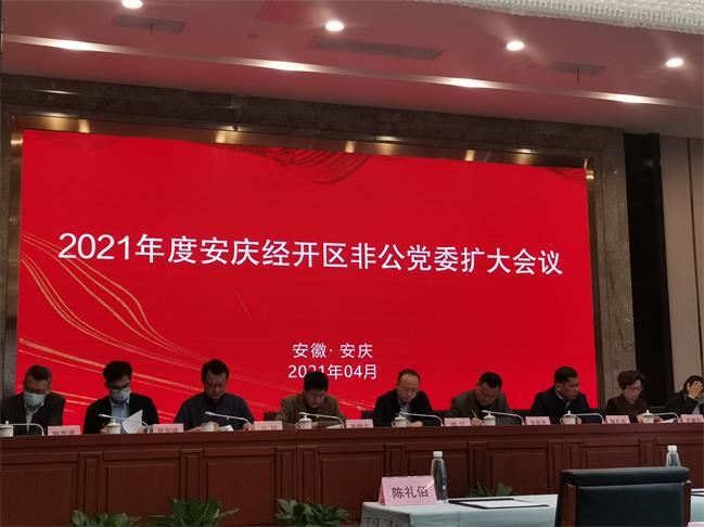 4月24日,中共安慶經開區非公黨委在宜召開非公黨委擴大會議,經開區非公黨委書記儲江、非公黨委副書記朱靜安、陳禮佰、方園及非公黨委委員、經開區非公基層黨支部代表60余人參加會議。