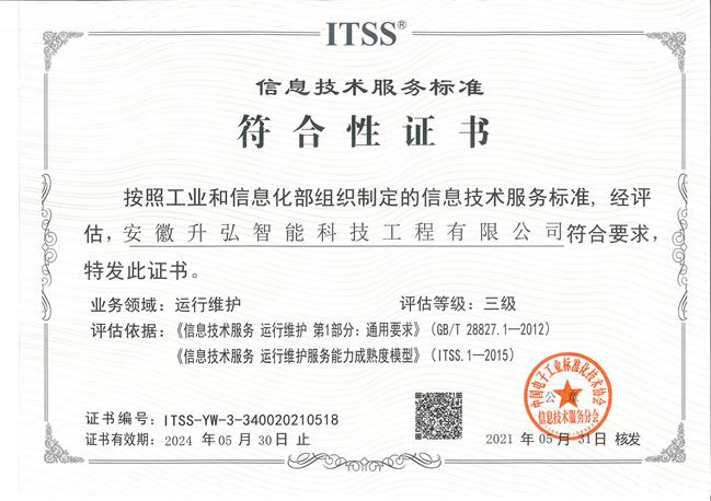 日前,升弘公司順利通過工信部中國(guó)電子工業(yè)標(biāo)準(zhǔn)化技術(shù)協(xié)會(huì)信息技術(shù)服務(wù)分會(huì)(簡(jiǎn)稱ITSS分會(huì))審核,獲發(fā)ITSS信息技術(shù)服務(wù)運(yùn)行維護(hù)三級(jí)資質(zhì)證書。