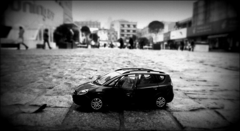 作者以小品的方式表述了人民路的改建,他巧妙地利用自帶的車模為道具,以改建后人民路的“彈石”路面為主場景,給我們講述了人民路“步行時代”的開始,同時以黑白片的懷舊形式敘述了“車載時代”已成為我們永久的記憶。