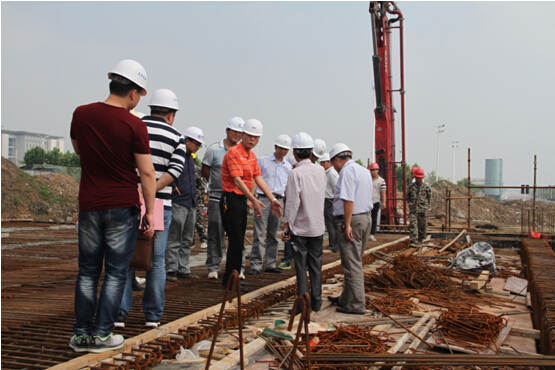 我公司潛江路二期工程項目管理人員和現場施工人員本著大干快上搶進度,保質保量完任務的原則,克服連日陰雨天氣,加班加點進行施工。早上5點,項目人員早早來到工地現場,為箱梁砼澆筑做好最后的檢查和準備工作。當天上午,市質監站有關領導到該工程項目現場實地抽查,對工程進行質量監督檢查并提出寶貴意見,項目部認真聽取意見并表示按要求落實整改。