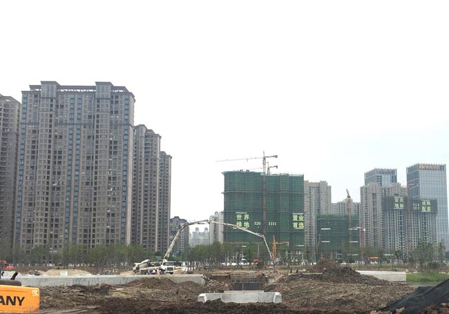 一進入施工現(xiàn)場,偌大的施工場景令人振奮: 十多輛工程機械緊張作業(yè),挖掘機、推土機的轟鳴聲震耳欲聾、重型卡車來回穿梭蕩起滾滾煙塵,工人緊張有序的加緊施工,茫然不覺外界的嘈雜。